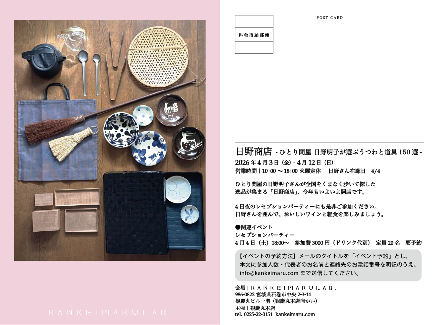日野商店 -ひとり問屋 日野明子が選ぶうつわと道具150選- 2026年4月3日(金)ー4月12日(日)