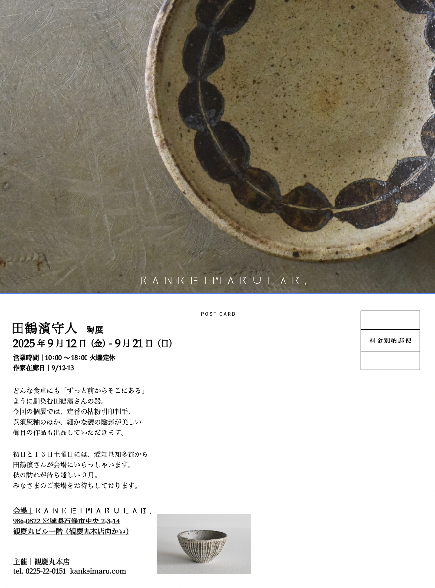 田鶴濱守人 陶展 2025年9月12日(金)ー9月21日(日)