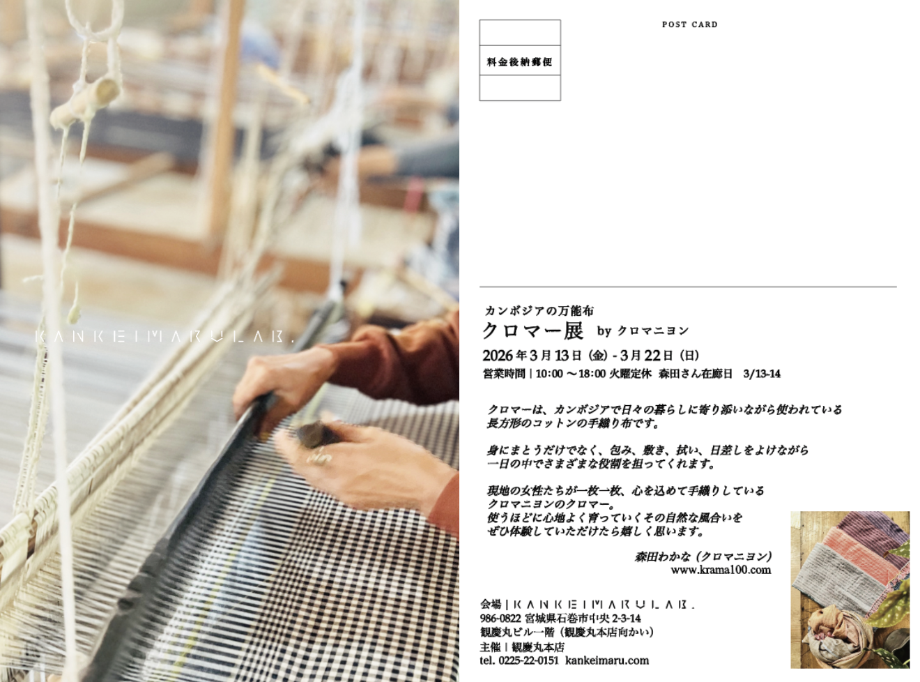 カンボジアの万能布 クロマー展 byクロマニヨン 2026年3月13日(金)ー3月22日(日)